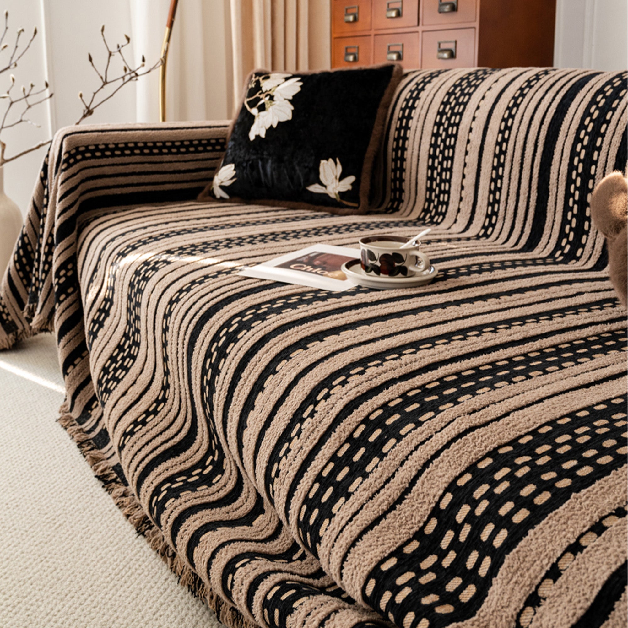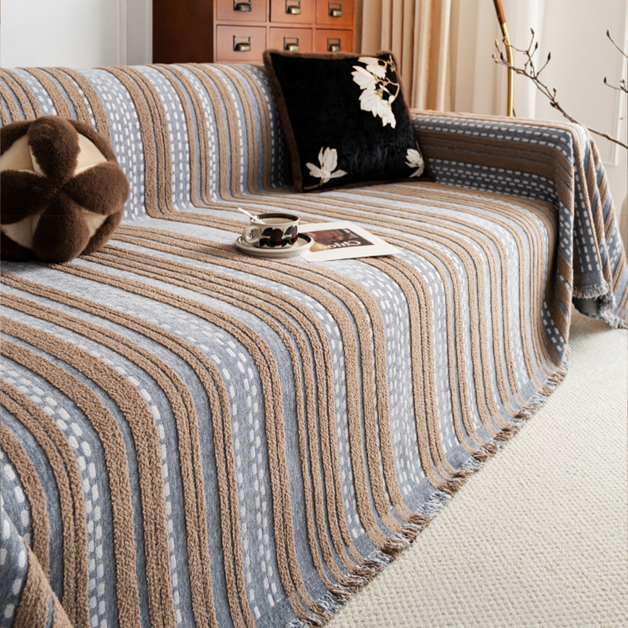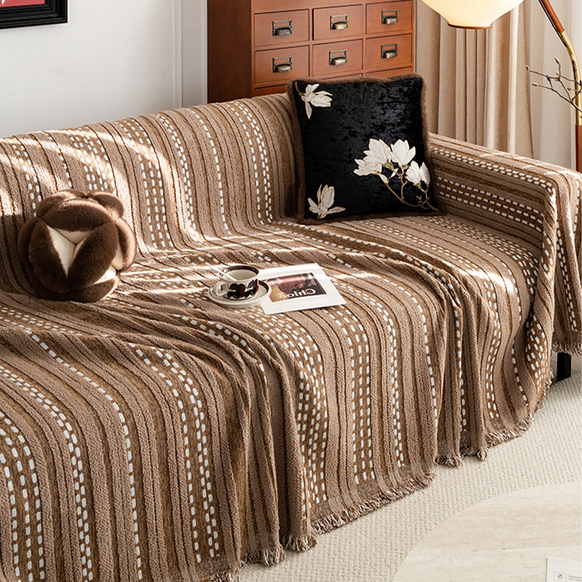 •Multiuso: use como capa de sofá, manta, corredor de cama ou tecido decorativo
