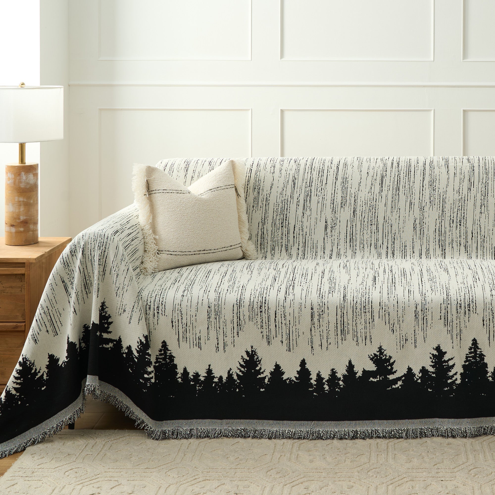 Transforme sua sala de estar em um retiro sereno na floresta com esta capa de sofá Forest Silhouette. O design minimalista em preto e branco apresenta uma impressionante linha de árvores contra um pano de fundo texturizado, adicionando um toque da tranquilidade da natureza à sua casa. Perfeito para proteger seus móveis e, ao mesmo tempo, elevar sua decoração.