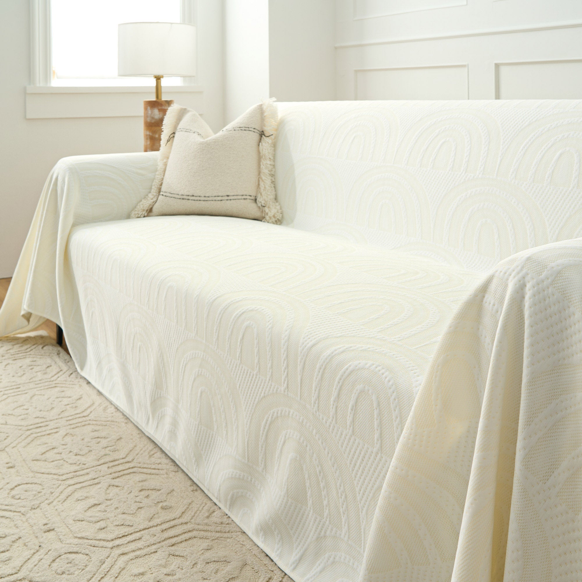 Renove sua sala de estar com nossa capa de sofá Cooling Textured Arch! Esta adição moderna e durável é perfeita para famílias ativas com animais de estimação e crianças. Ele pode ser configurado em apenas 10 segundos, oferece cobertura completa de 360 graus e é lavável à máquina para uma manutenção sem complicações. Dê ao seu sofá uma atualização econômica com um toque prático e divertido!