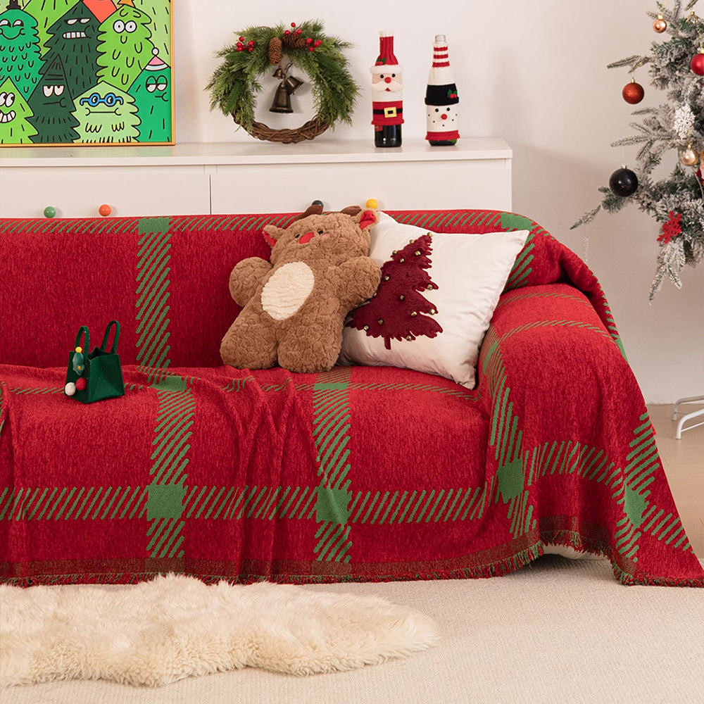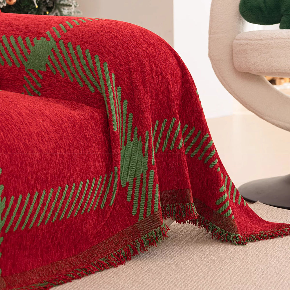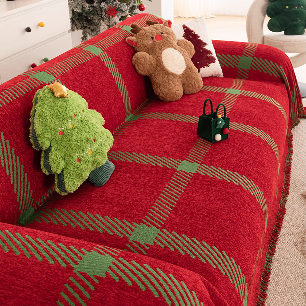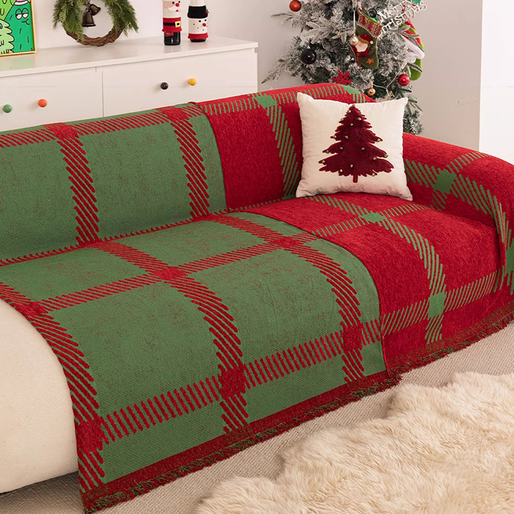 Capa de sofá festiva xadrez em chenille resistente a arranhões