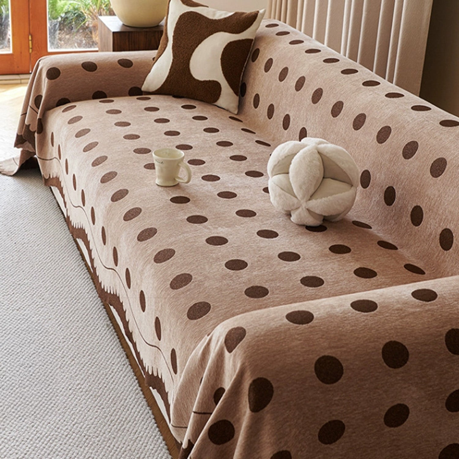 Capa de sofá elegante em chenille com estampa de bolinhas e resistente a arranhões.