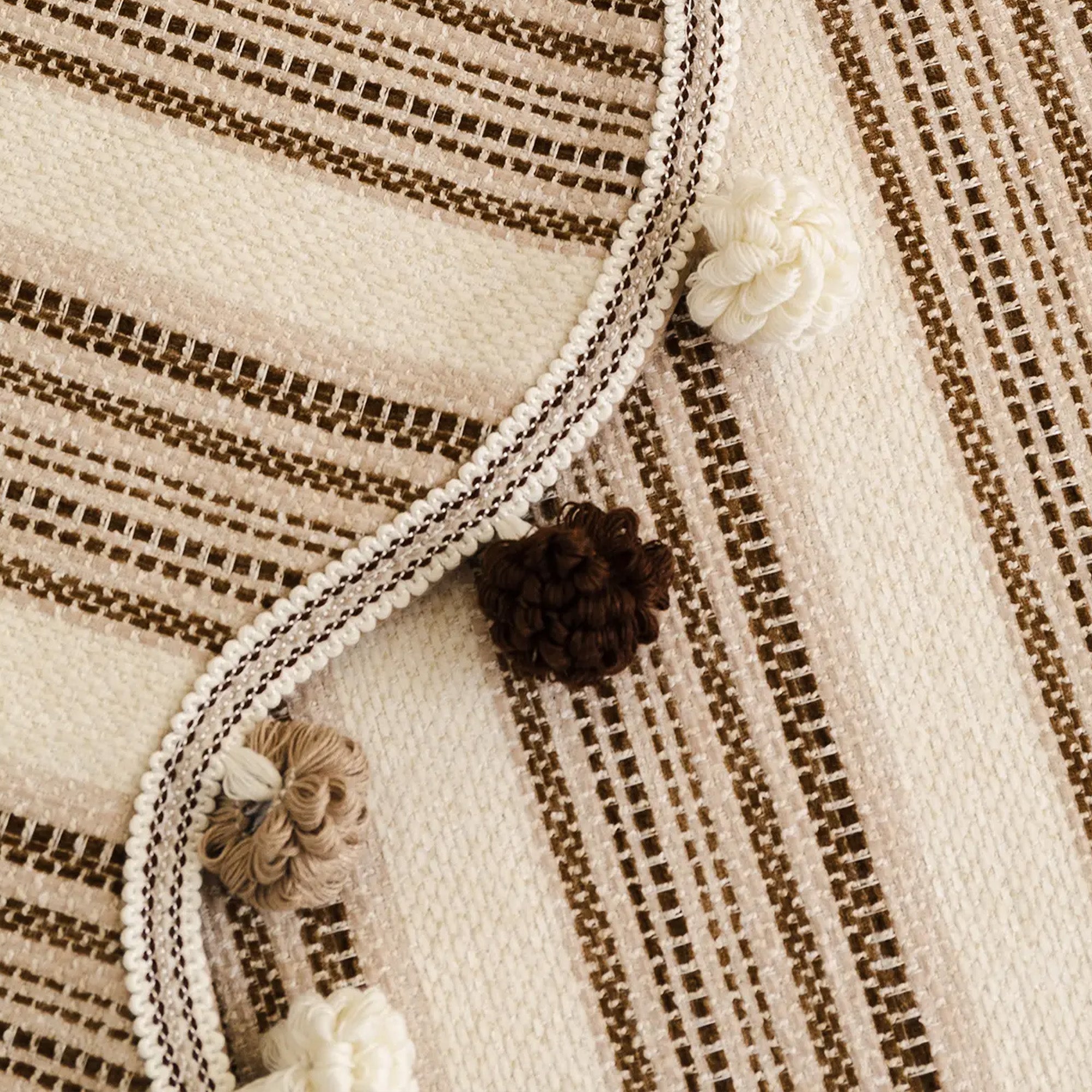 •Padrão listrado clássico com acabamento decorativo em pompom para um visual aconchegante e estiloso.