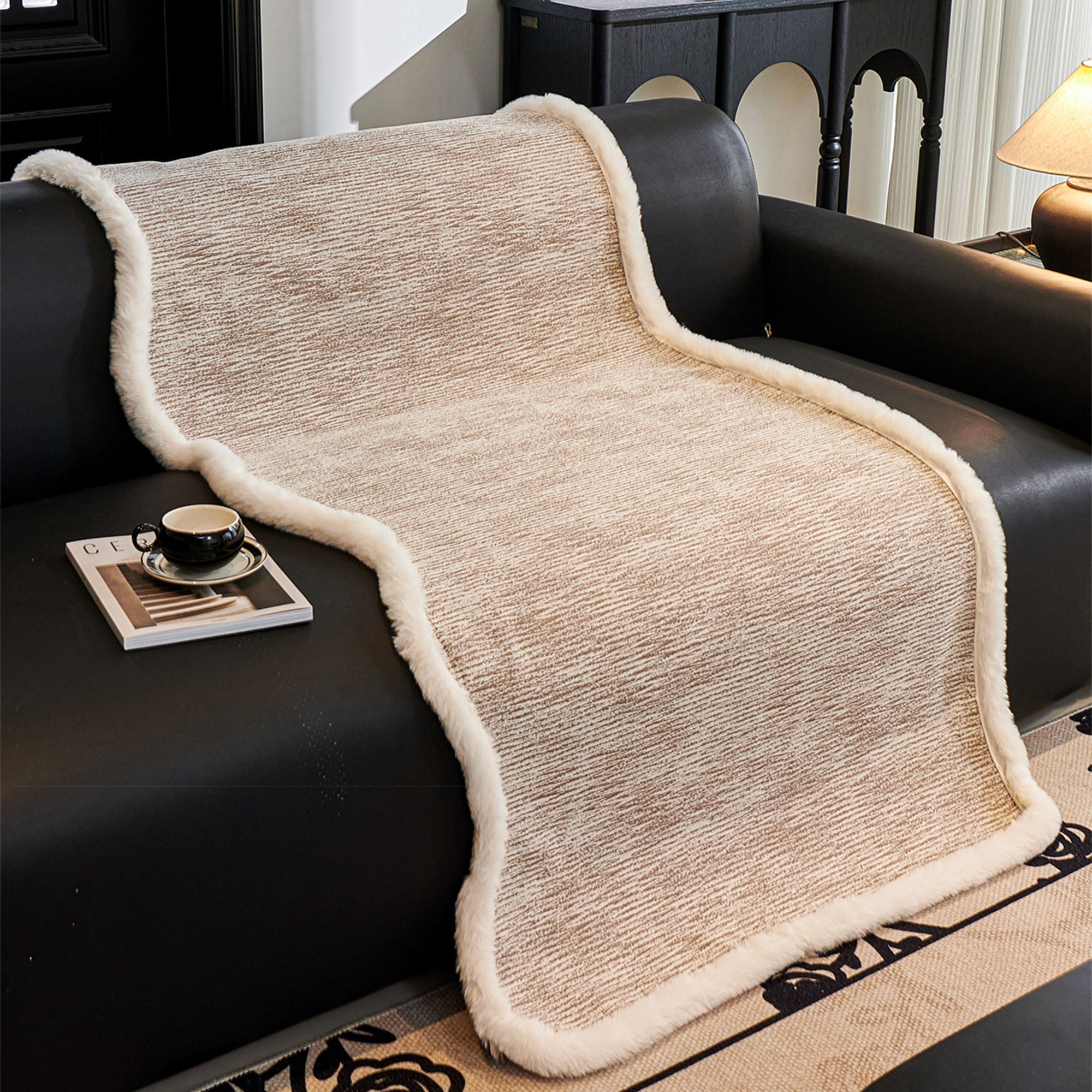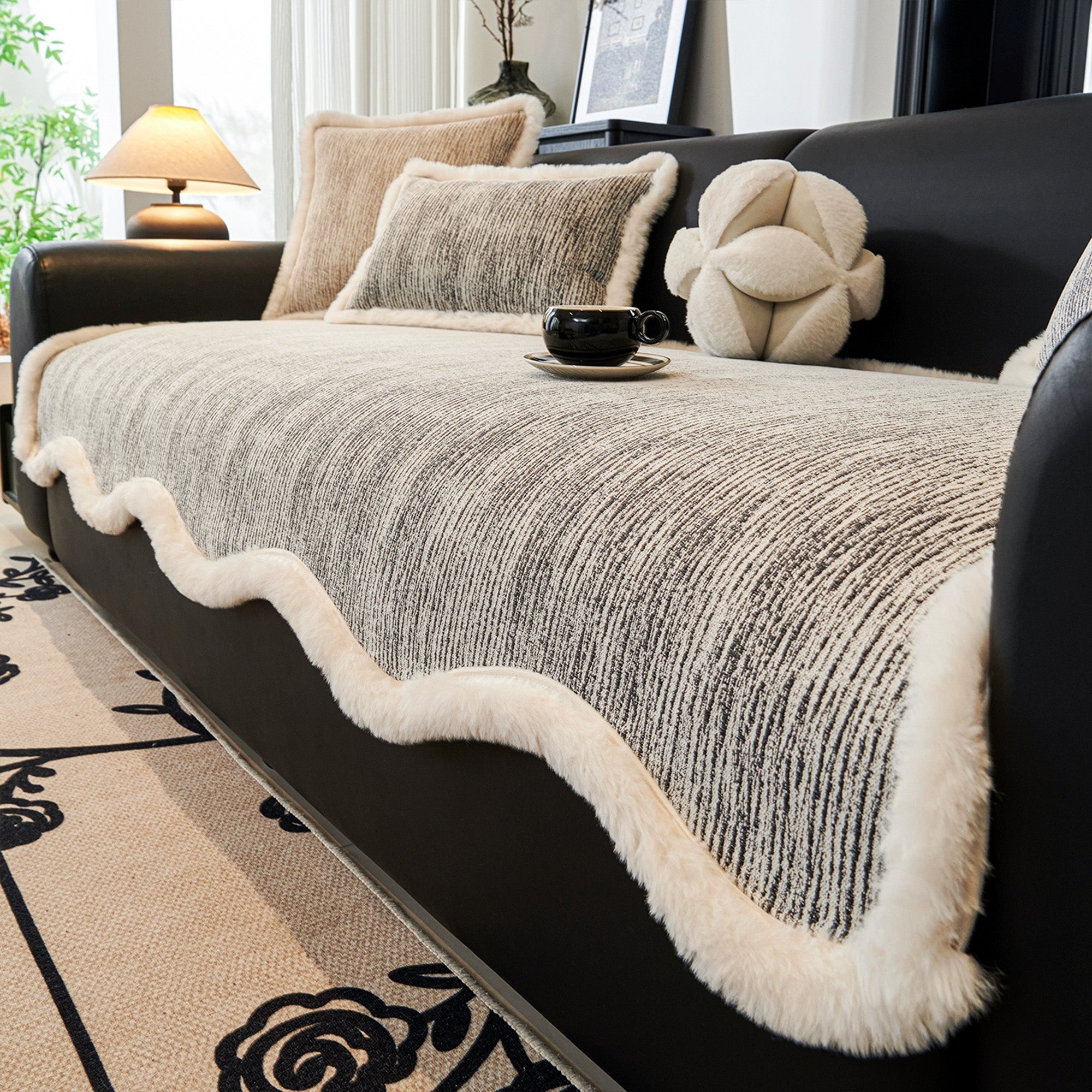 Capa de sofá de chenille com bordas de pelúcia e pelúcia aconchegante