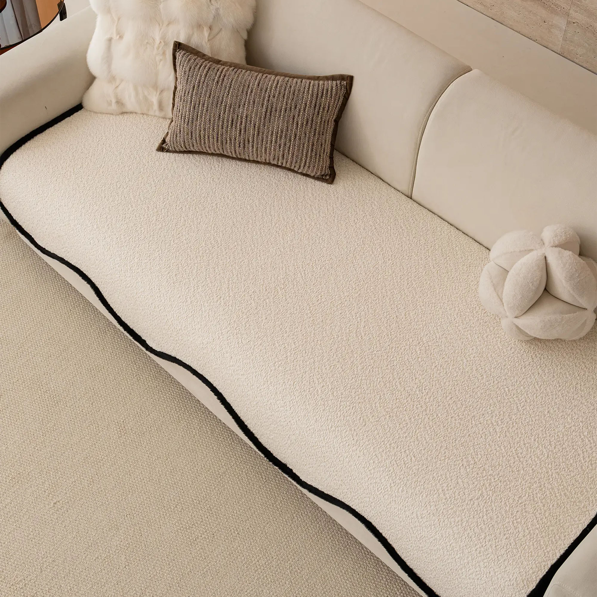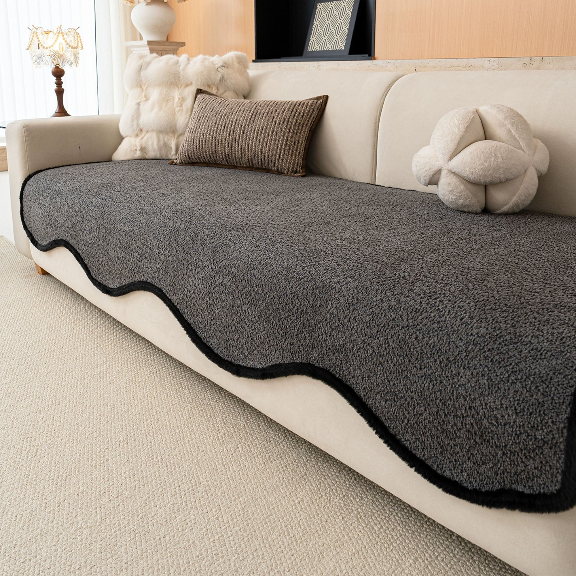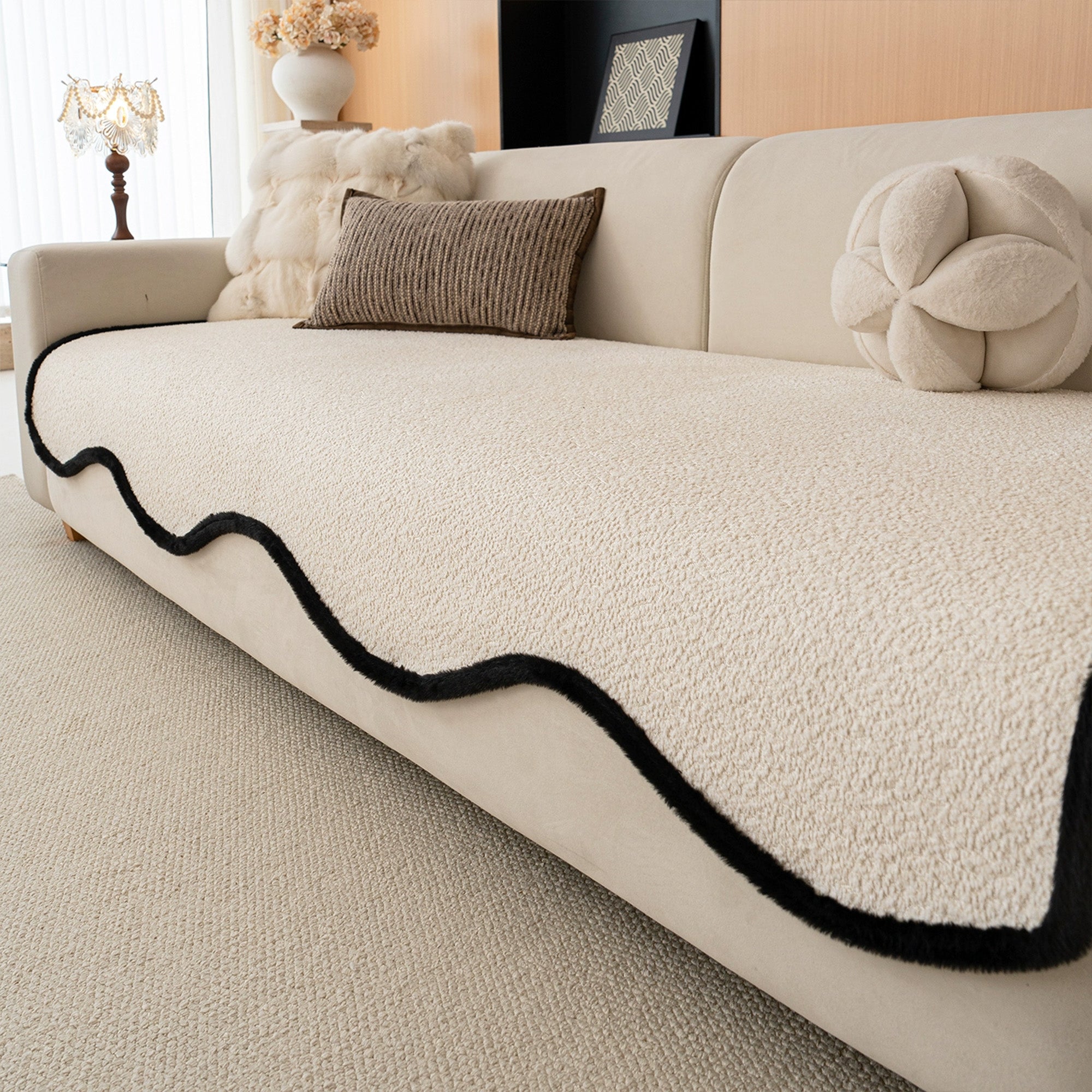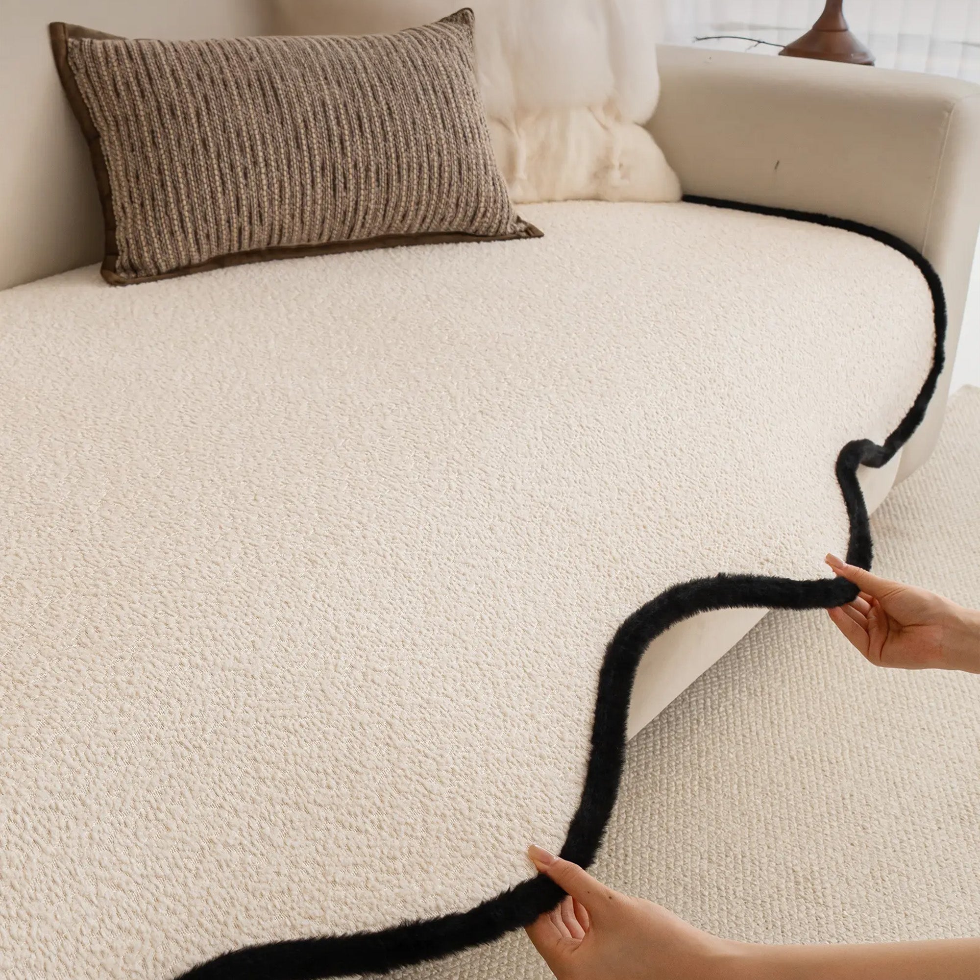 Capa de sofá elegante antiderrapante em chenille com acabamento preto