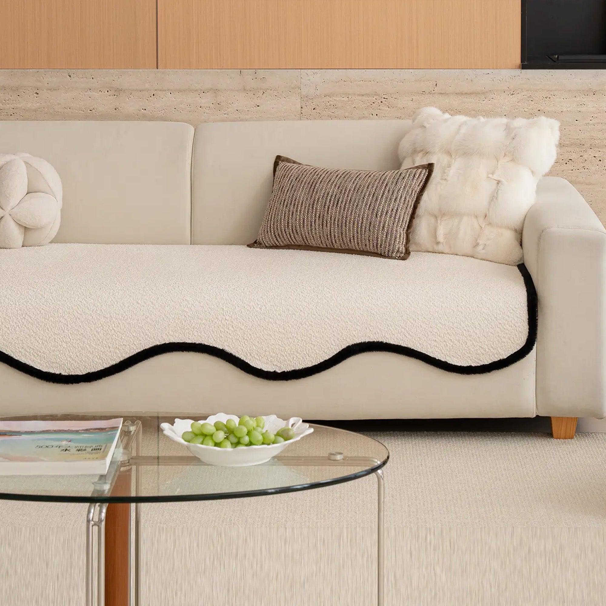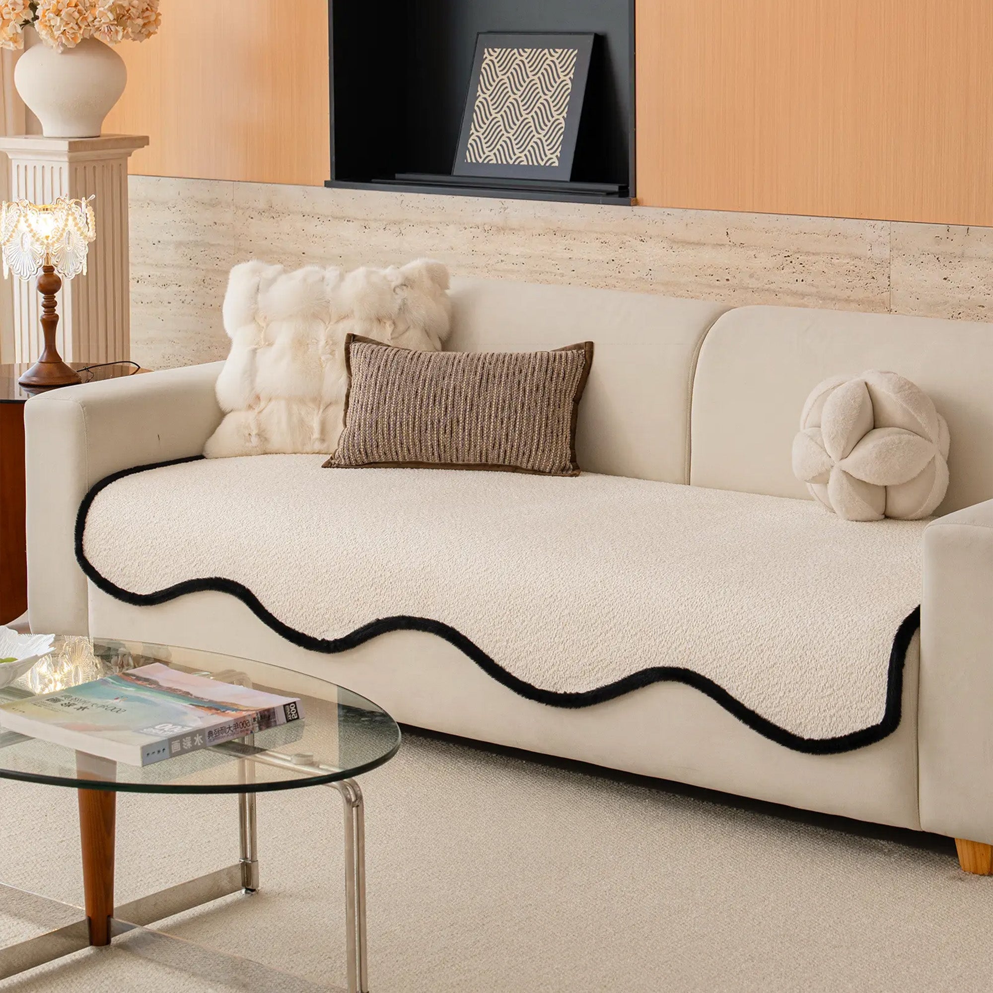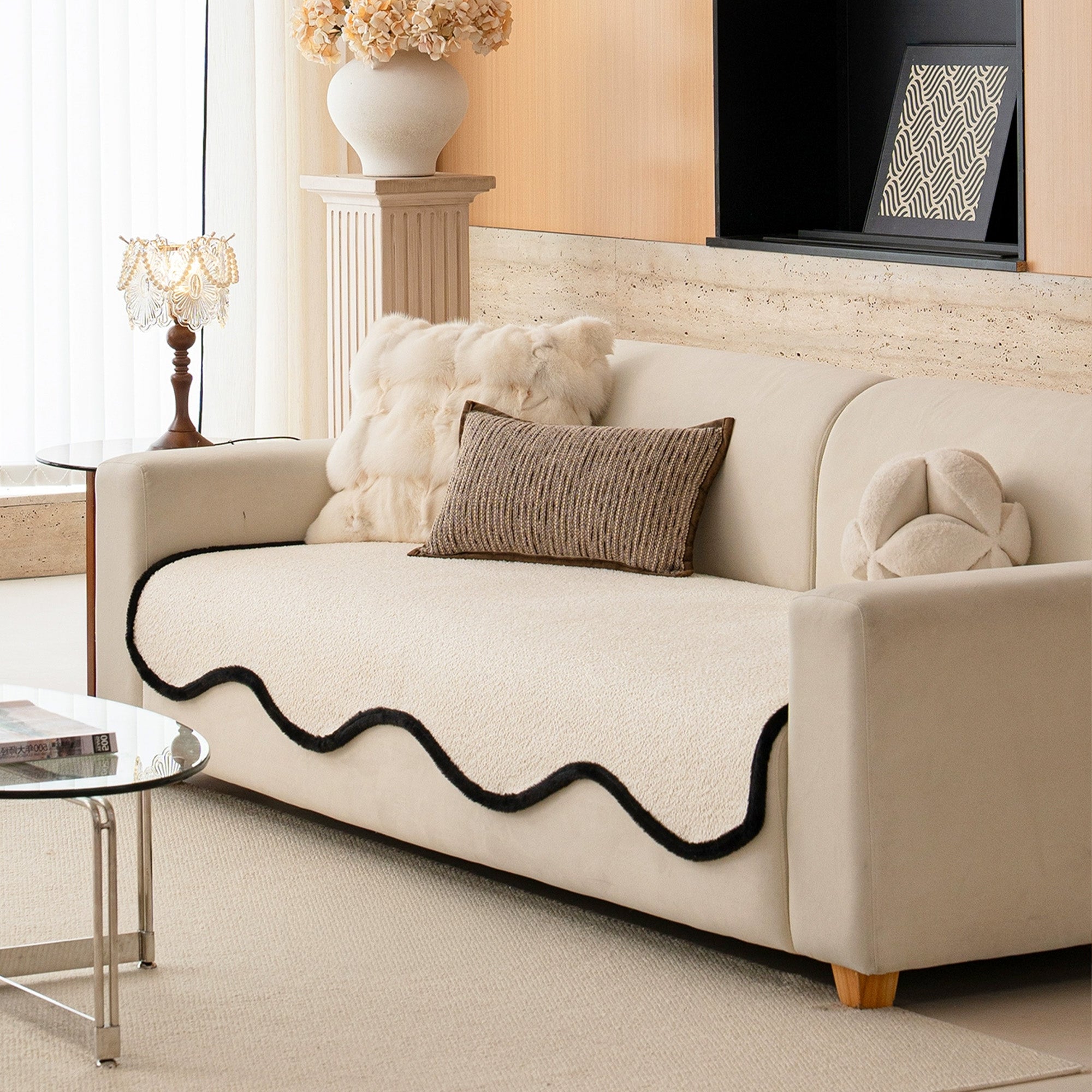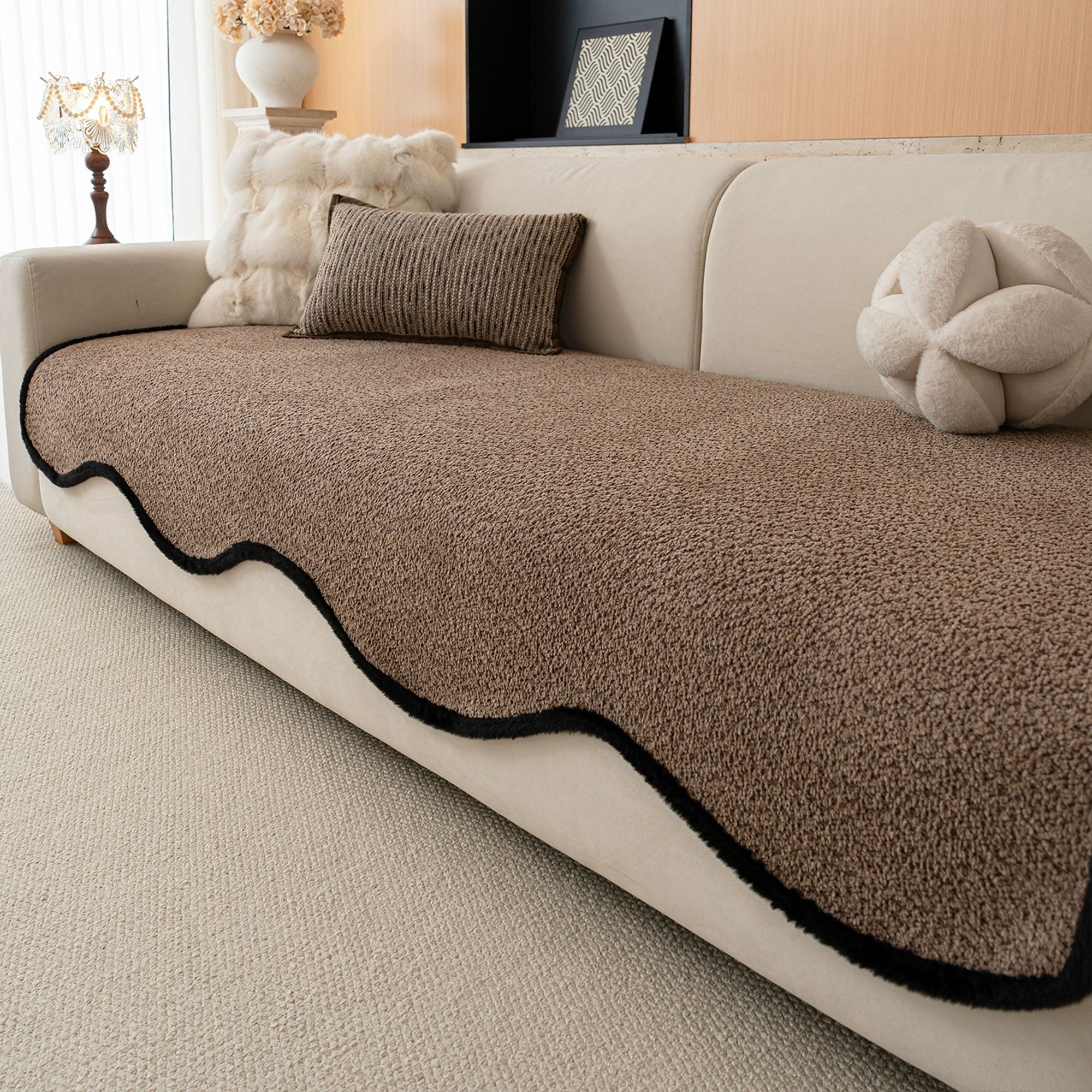 Capa de sofá elegante antiderrapante em chenille com acabamento preto
