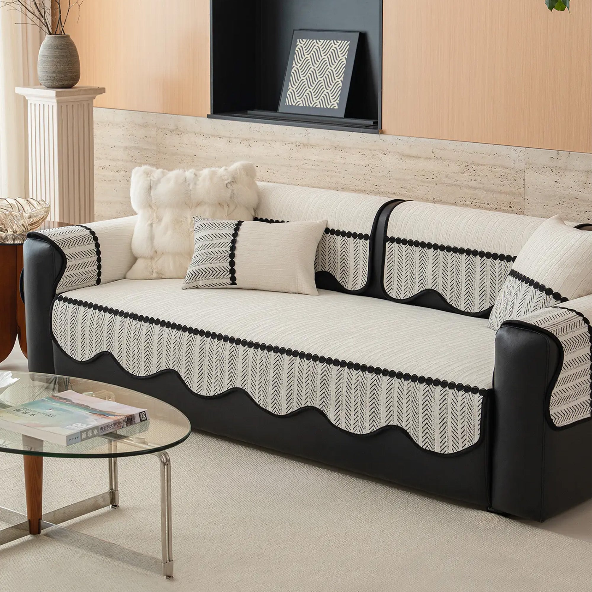 Capa de sofá antiderrapante com estampa geométrica e jacquard