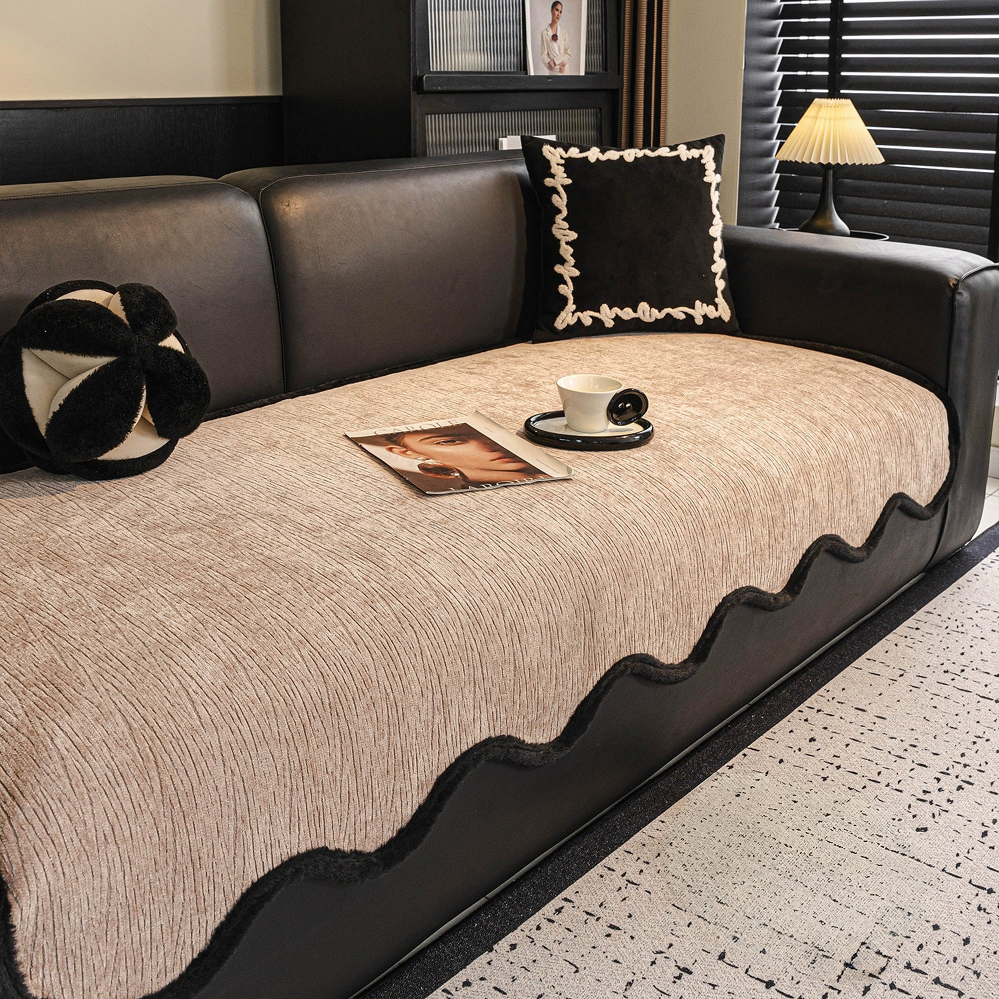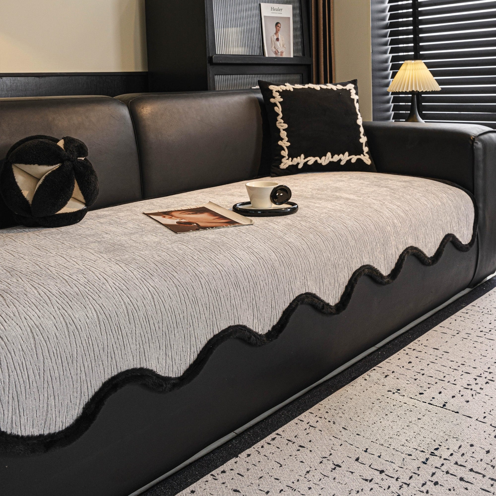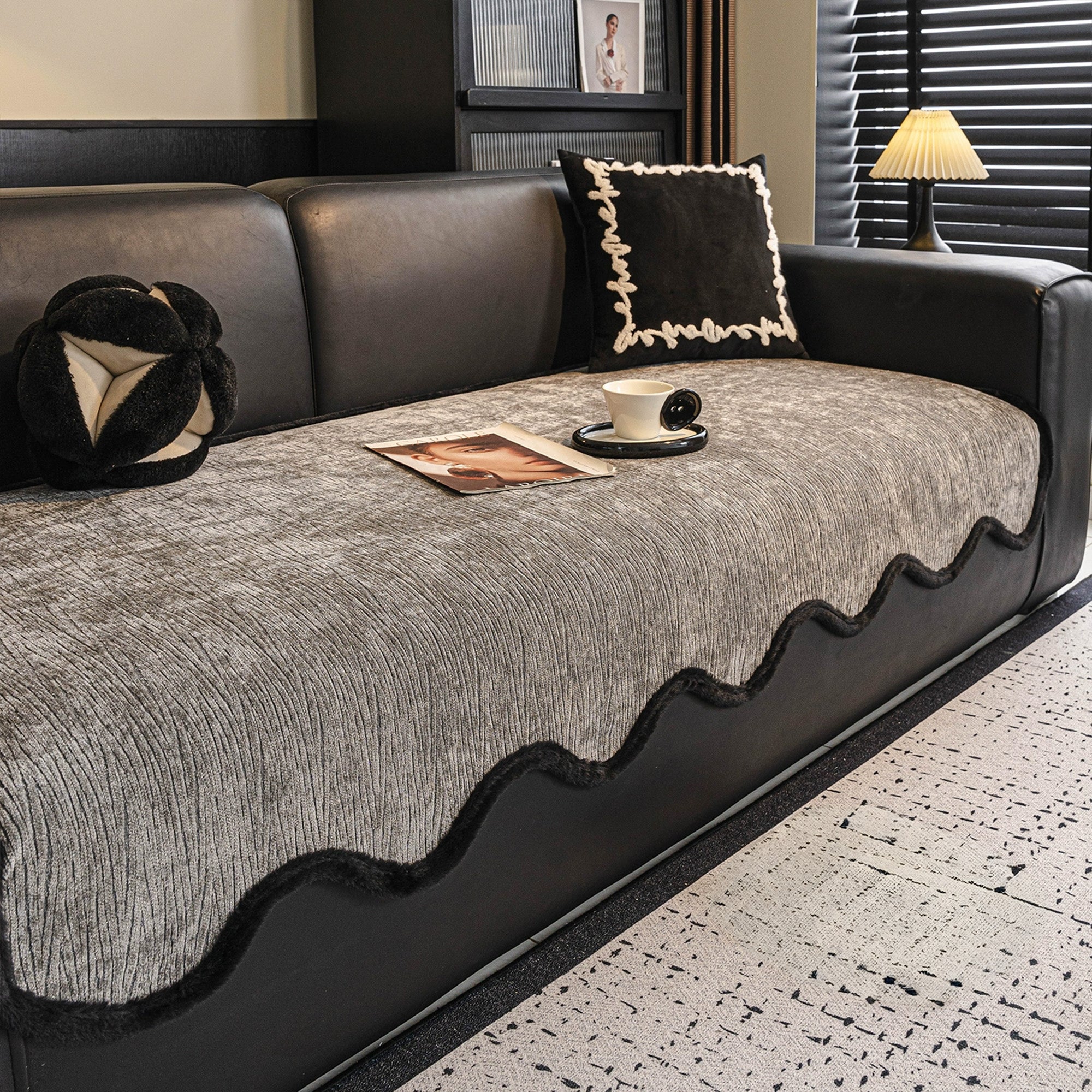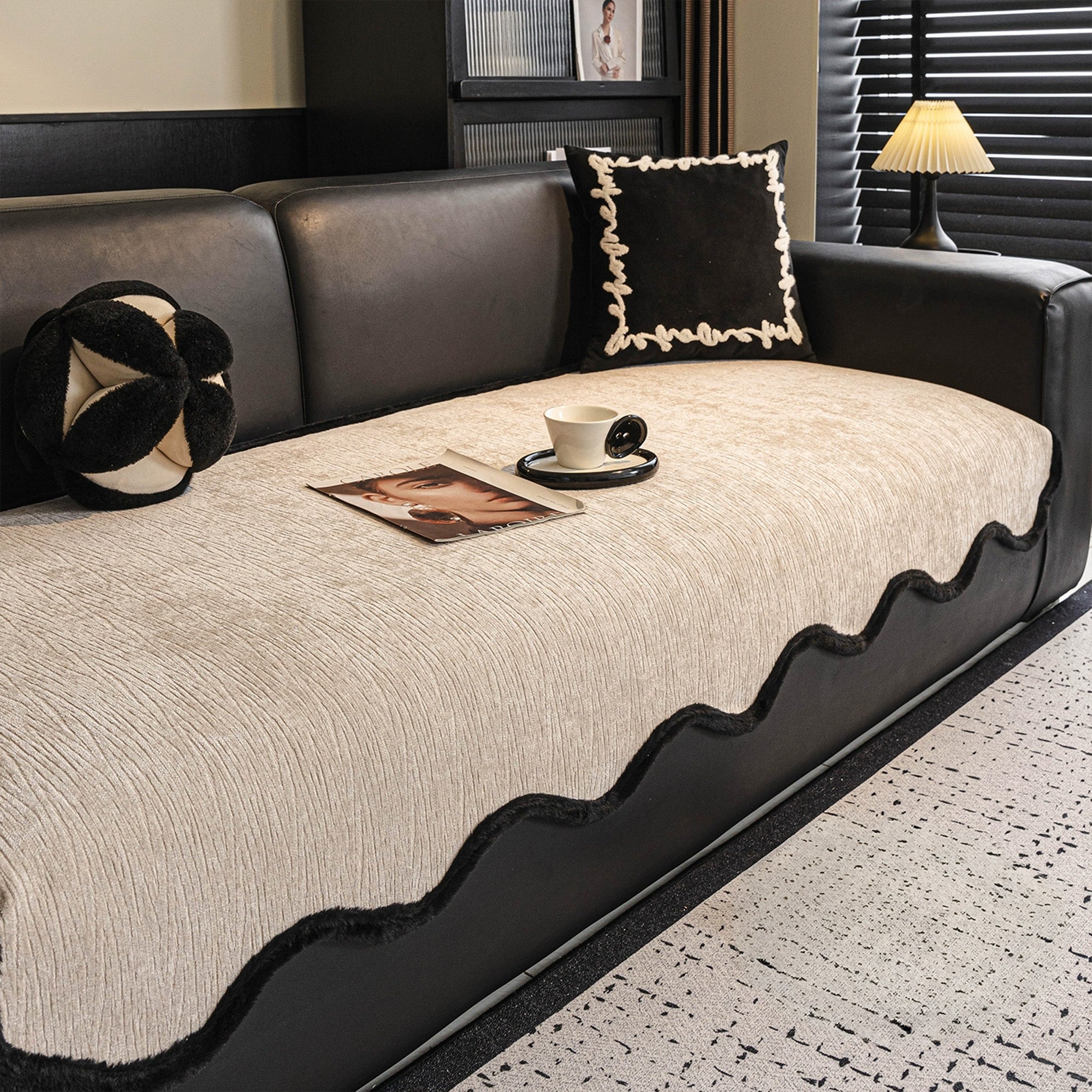 Eleve seu ambiente com a Capa de Sofá Modern Wave Chenille Antiderrapante, uma combinação perfeita de estilo, durabilidade e proteção. Com uma luxuosa textura ondulada emoldurada por bordas pretas ousadas, esta capa traz sofisticação contemporânea ao seu sofá, ao mesmo tempo em que oferece funcionalidade confiável para o dia a dia.