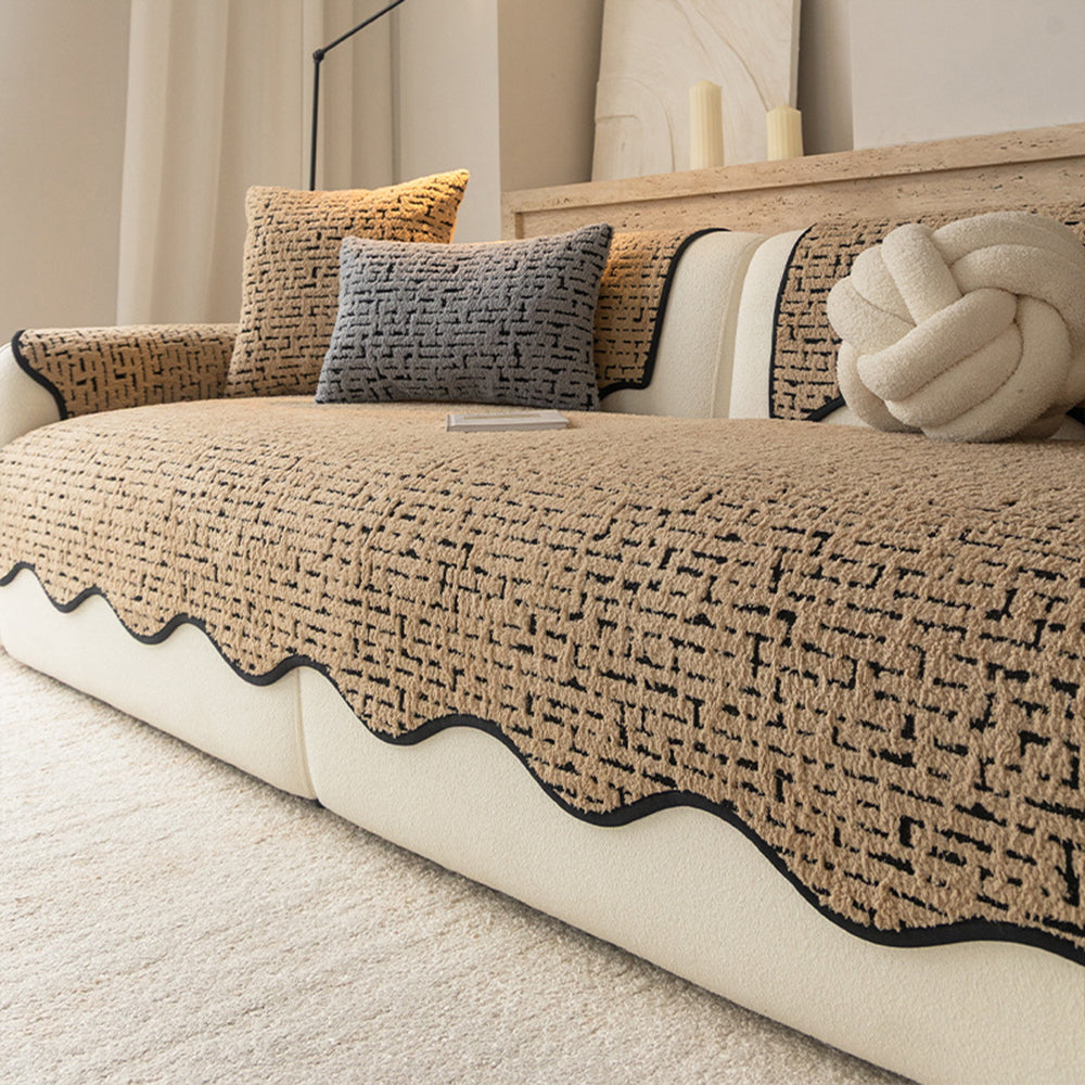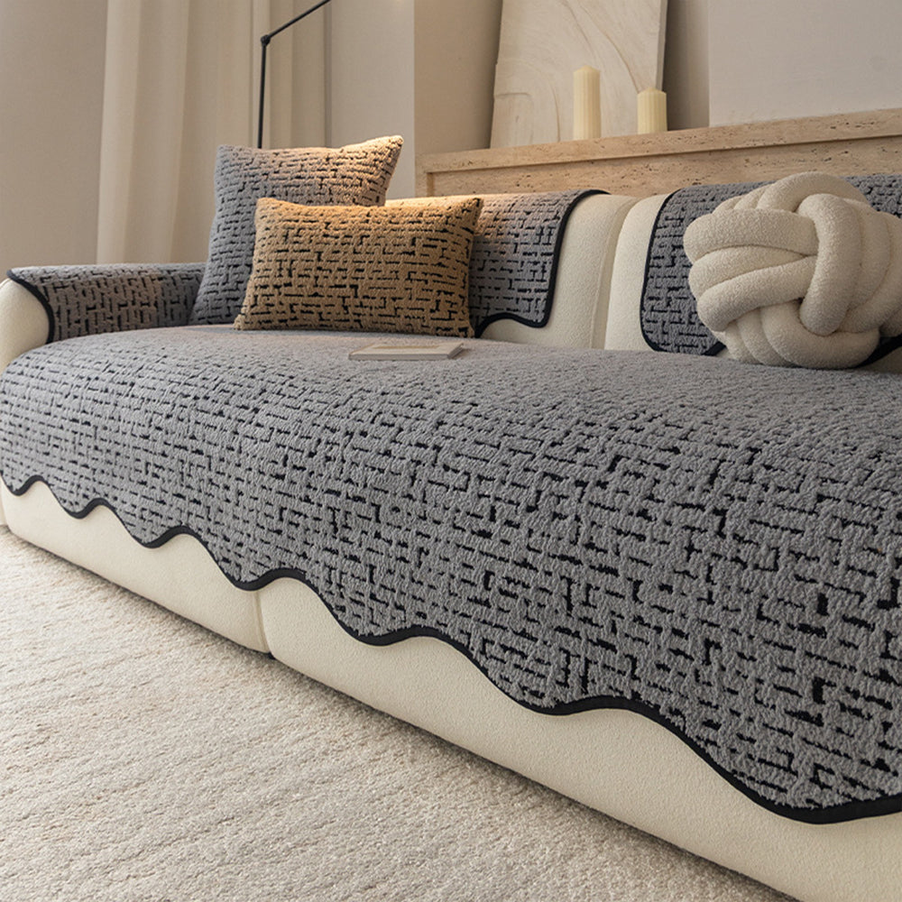 Adicione textura sofisticada e conforto à sua casa com a nossa capa de sofá antiderrapante de pelúcia com padrão de ondas modernas. Projetada para os meses mais frios do outono e inverno, esta capa apresenta uma borda ondulada irregular e uma trama geométrica exclusiva para um toque refinado e artístico. O tecido de pelúcia denso e de pelo curto oferece calor e maciez, mantendo a durabilidade e a resistência ao desgaste.