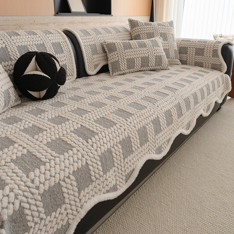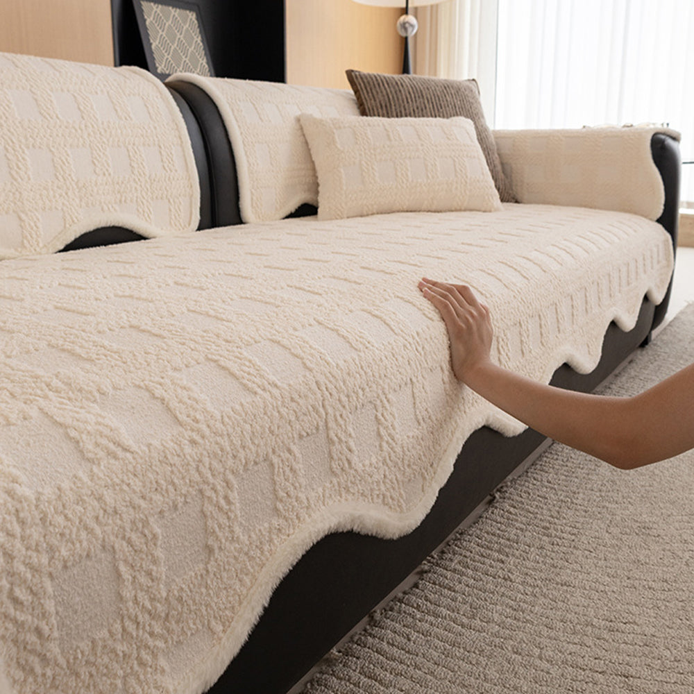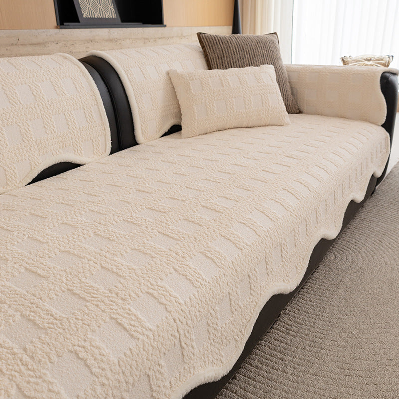 Capa de sofá antiderrapante em pelúcia com textura de tecido