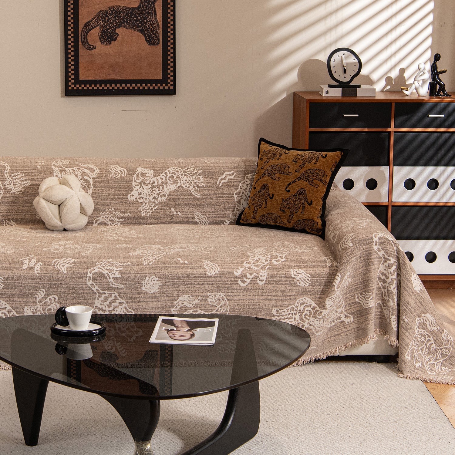 Confeccionada em tecido chenille premium, oferece o equilíbrio perfeito entre maciez, durabilidade e conforto em todas as estações. A textura densa da trama não só realça a estética retrô, como também proporciona resistência confiável a arranhões — ideal para casas com animais de estimação brincalhões.