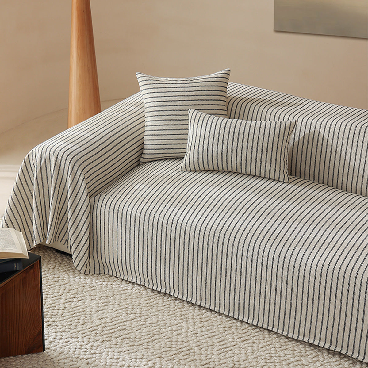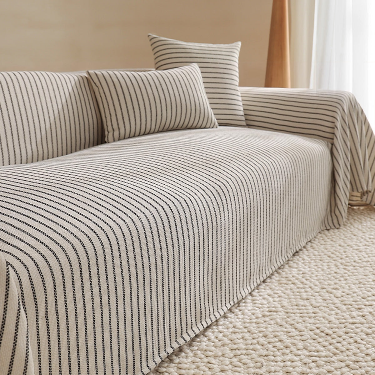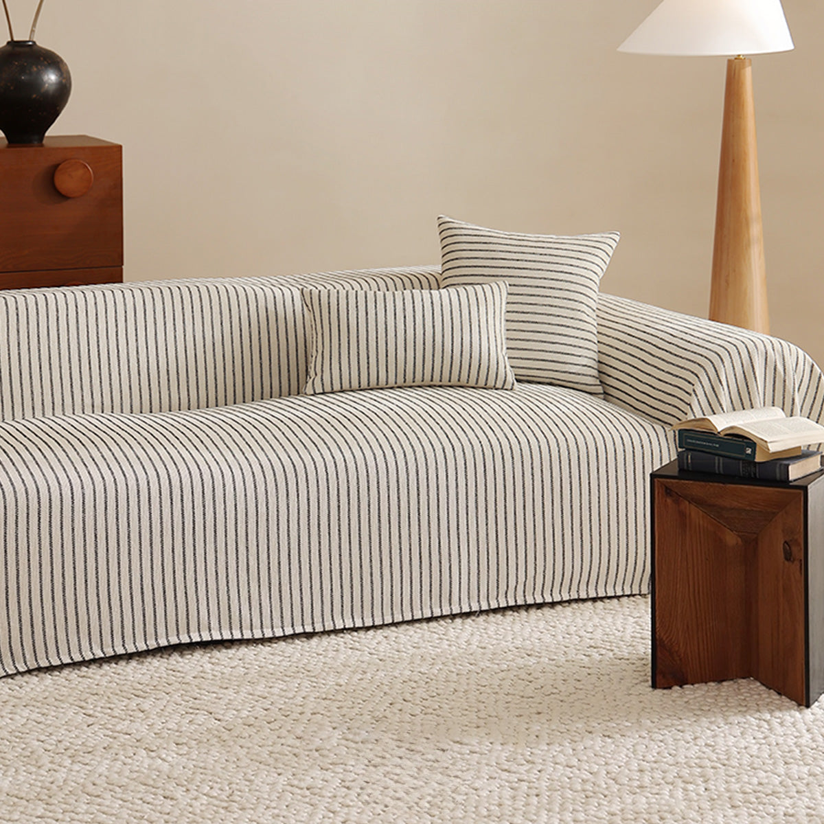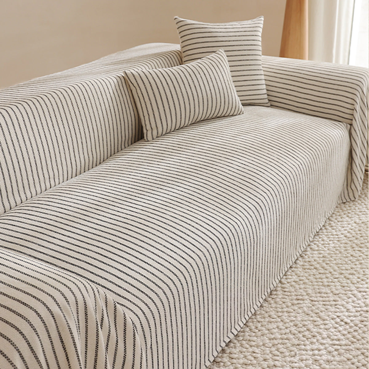 Capa de sofá clássica com aparência de linho listrado resistente a arranhões