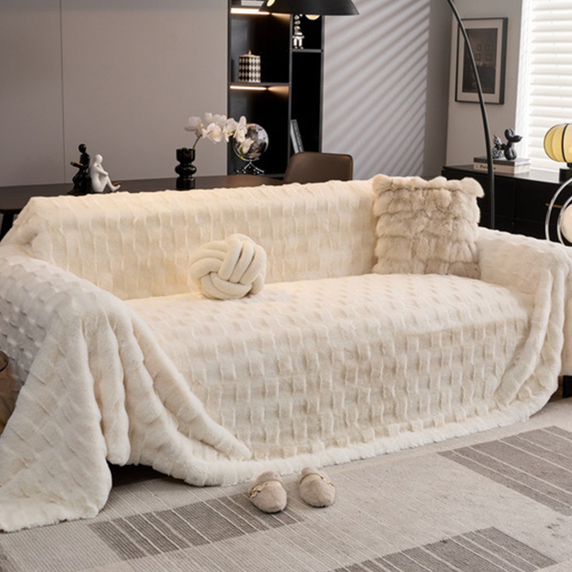 Esta capa de sofá de lã quente com textura côncava-convexa de pele de coelho pequena foi projetada para fornecer conforto e estilo, oferecendo um toque aconchegante e luxuoso aos seus móveis. Sua textura única e forro de lã quente fazem dela um complemento perfeito para qualquer sofá, proporcionando calor extra durante os meses mais frios, ao mesmo tempo em que melhora a estética geral do seu espaço de vida.